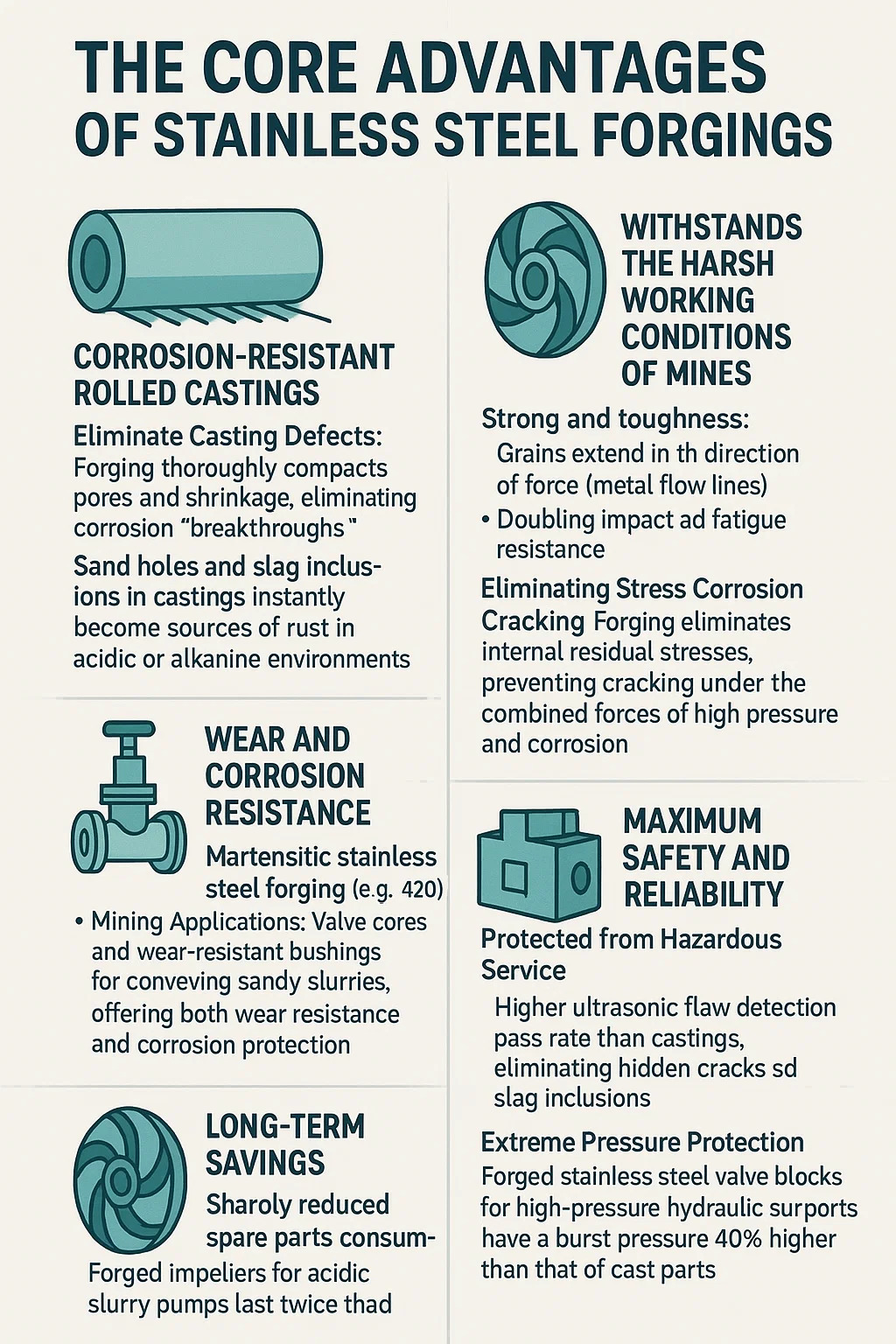| "دفاع فقط سطحی" (خوردگی از عیوب زیرسطحی شروع می شود) | "زره عمیق" (مقاومت در برابر خوردگی یکنواخت از طریق کل سطح مقطع) | خوردگی حفره به سرعت به قطعات ریخته گری نفوذ می کند. قطعات آهنگری به آرامی و قابل پیش بینی تخریب می شوند. |